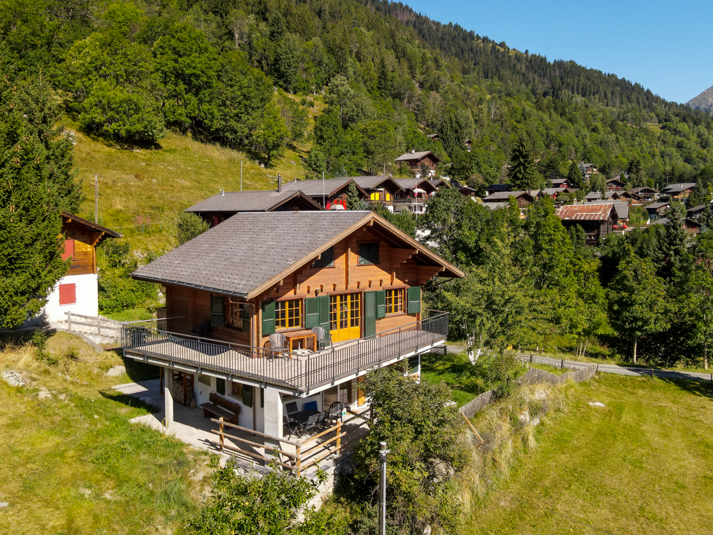 Das Chalet Anne-Marie EG ist ein alleinstehendes Chalet mit 2 Wohnungen an schöner, ruhiger und sonniger Lage im Dorfteil "Birchi".