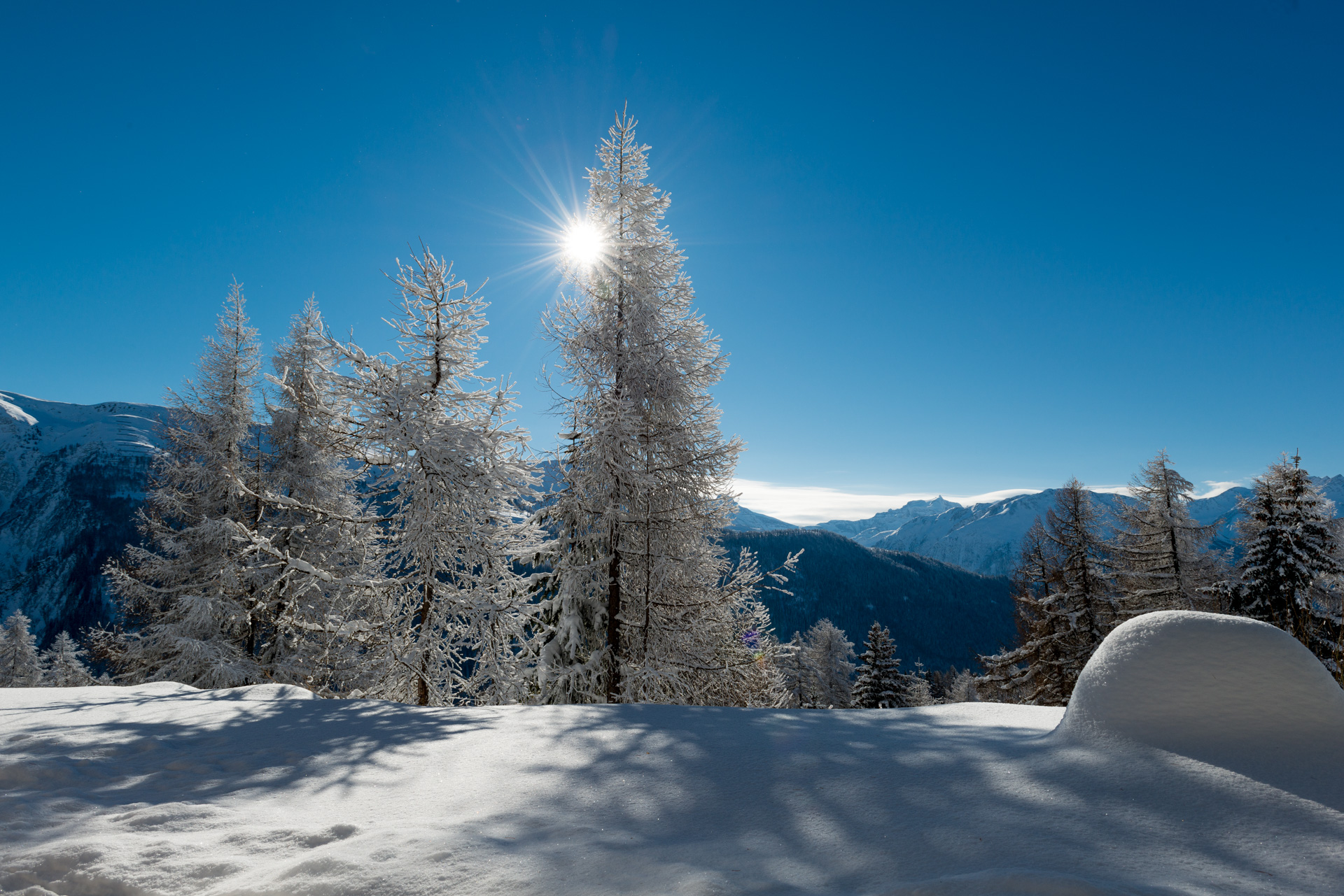 Winterwandern in winterlicher Traumkulisse auf 72 km gut präparierten Winterwanderwegen. Was für ein Erlebnis! Gewärmt von der Walliser Sonne, begleitet von den funkelnden Schneekristallen in der tief verschneiten Landschaft mit einem Panoramablick auf die Viertausender oder den Grossen Aletschgletscher.